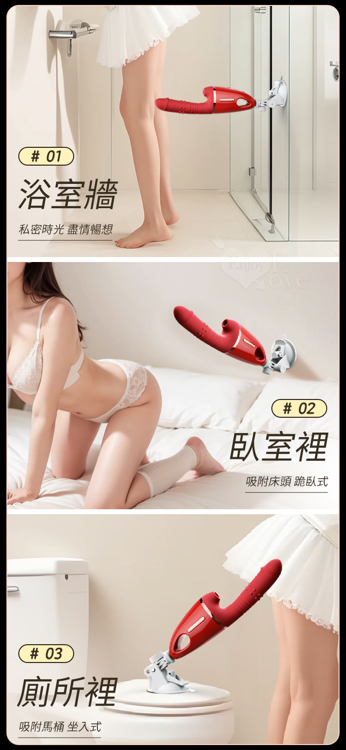 ROSELEX 勞樂斯 ‧ 安吉拉 10x10頻全自動伸縮+吸吮吸盤炮機 - 可手機APP遠程遙控﹝白﹞