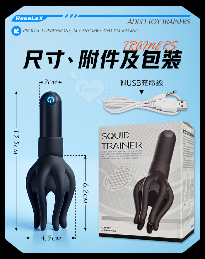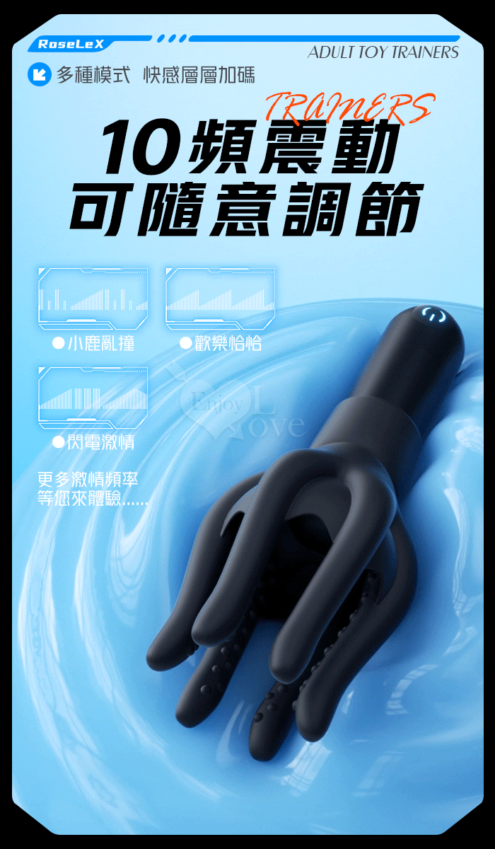 ►您現在的位置:首頁>ROSELEX 勞樂斯 ‧ 烏賊 六爪觸手半包強莖鍛煉自慰器﹝10頻震動+可分離設計+USB充電﹞