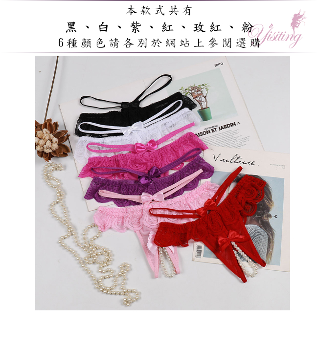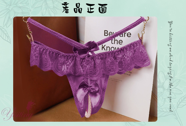 | 浪漫情人!輕膚柔紗拼接蕾絲迷人珍珠開襠丁字褲﹝紫﹞