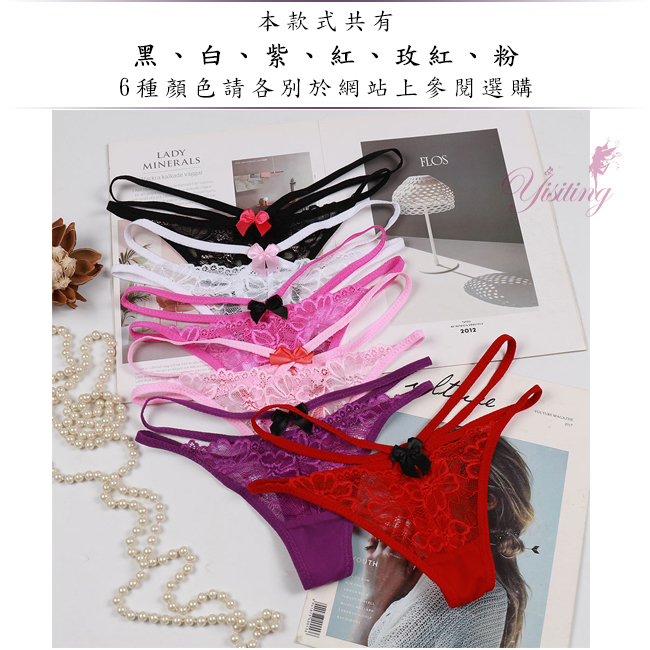 寵愛今夜!雙細帶蕾絲花朵性感美臀T字褲﹝粉﹞
