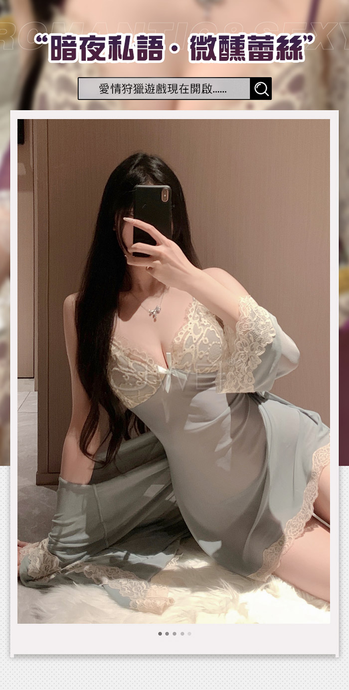 ►您現在的位置:首頁>微醺蕾絲.性感深V露溝睫毛蕾絲覆胸美背睡裙-綠色【外袍+睡裙+T褲】