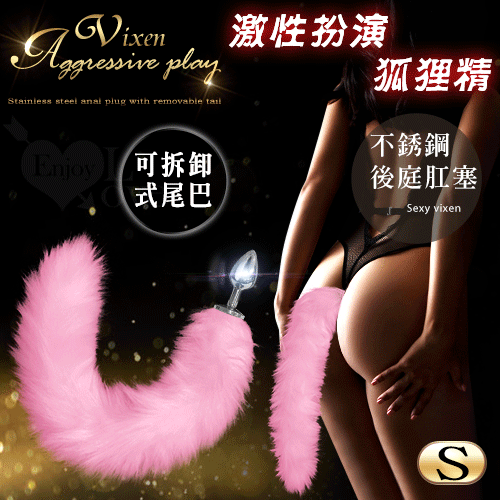 | 激性扮演狐狸精 ‧ 不銹鋼後庭肛塞+尾巴毛 - 粉﹝S 可組裝拆卸﹞
