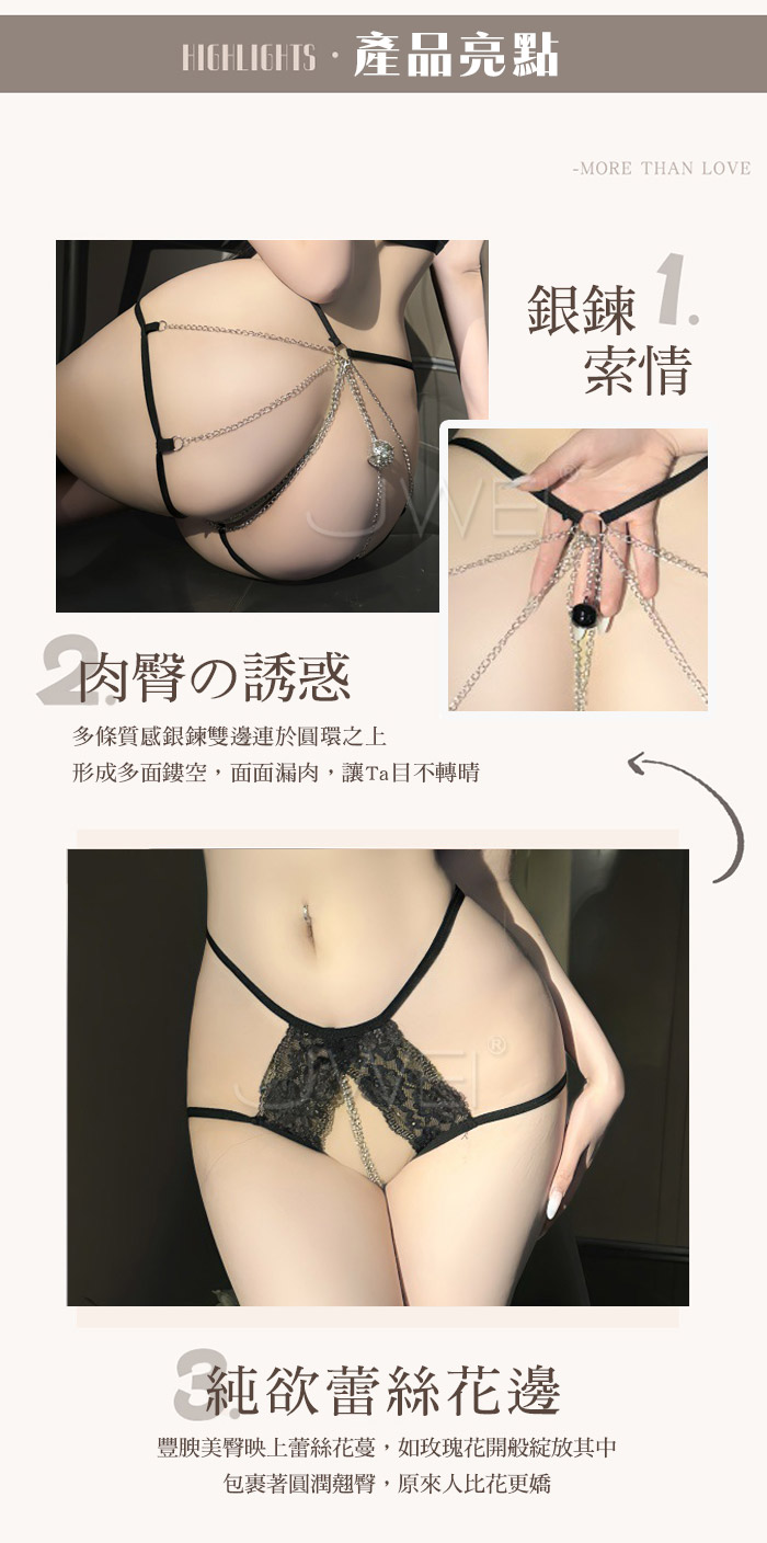 魅惑響鈴.金屬圓環鏈條勒臀蕾絲開檔內褲【銀鈴噹】