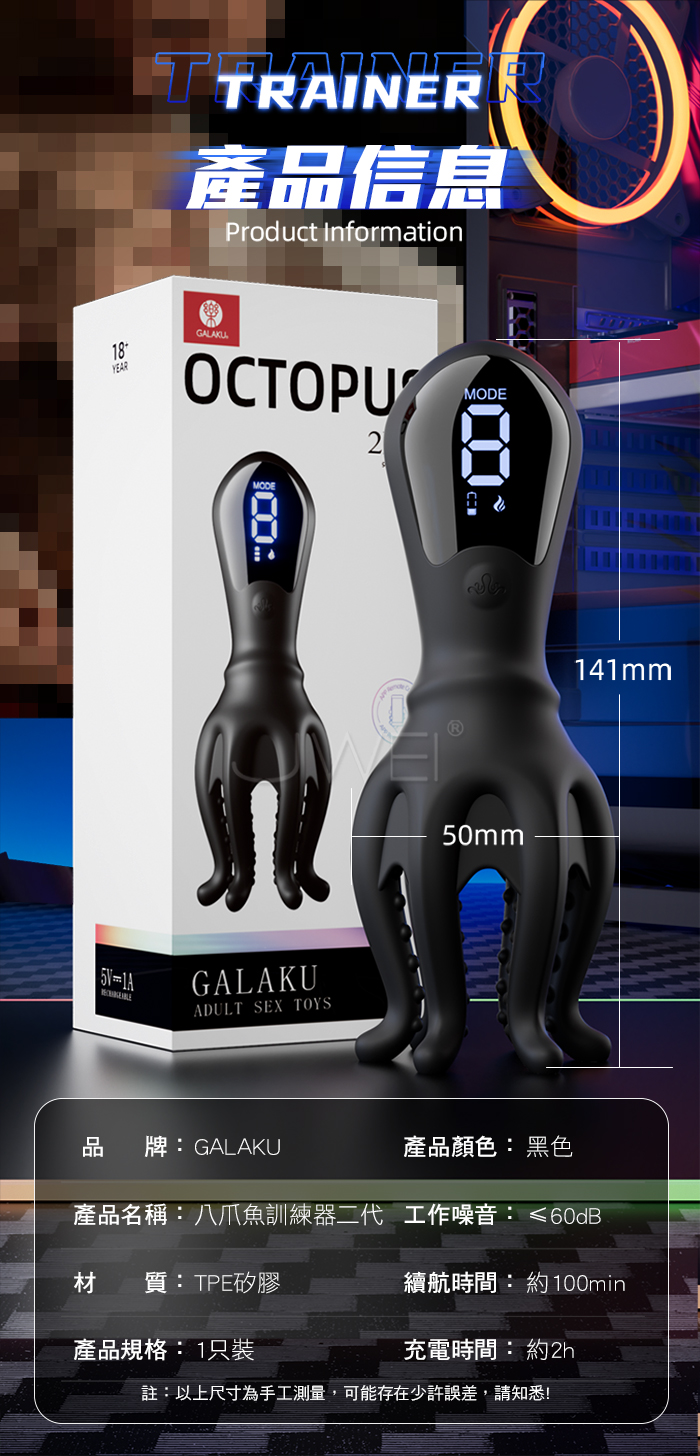 | GALAKU.八爪鱼二代 9頻強震 升級六腳顆粒刺激 APP智控強莖訓練器