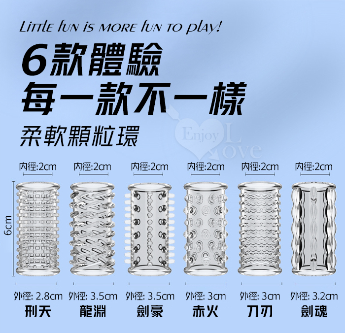 | 武魂系列.劍魂六組合套~顆粒入珠肉刺環繞鎖精延時陰莖加強環~成人性趣輔助用品-6款體驗裝﹝透明白﹞