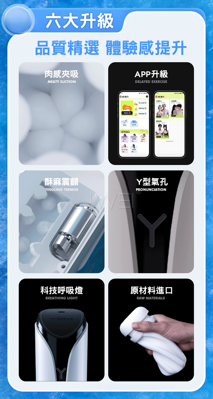 擬真肉感通道,Q彈軟糯,9種模式酥麻震顫 模擬真實通道律動 1指操控 吮吸控制,通過按住前端Y字形出風口 隨著抽插,控制內部氣壓狀態,從緊緻密道,到酣暢淋漓 戰鬥力訓練,層層顆粒刺激,每次多堅持一分鐘,挑戰自我 時尚外觀,流線杯身簡約設計,全新的視覺體驗!! 產品規格 ■尺寸:大小詳如圖片標示 ■材質:TPE+ABS ■特點:9頻震動、Y型氣孔負壓吮吸、APP智控